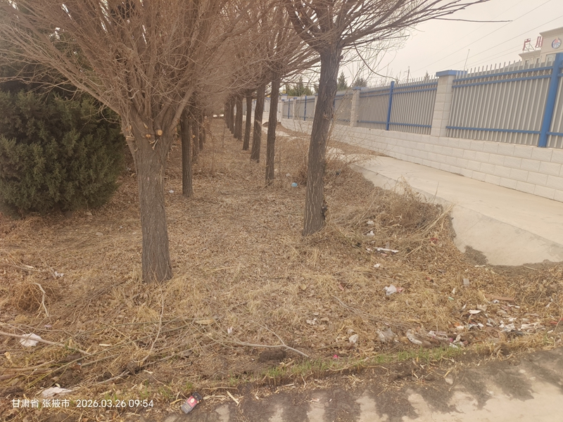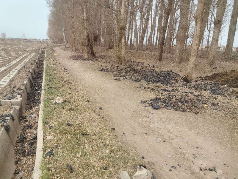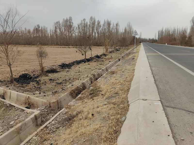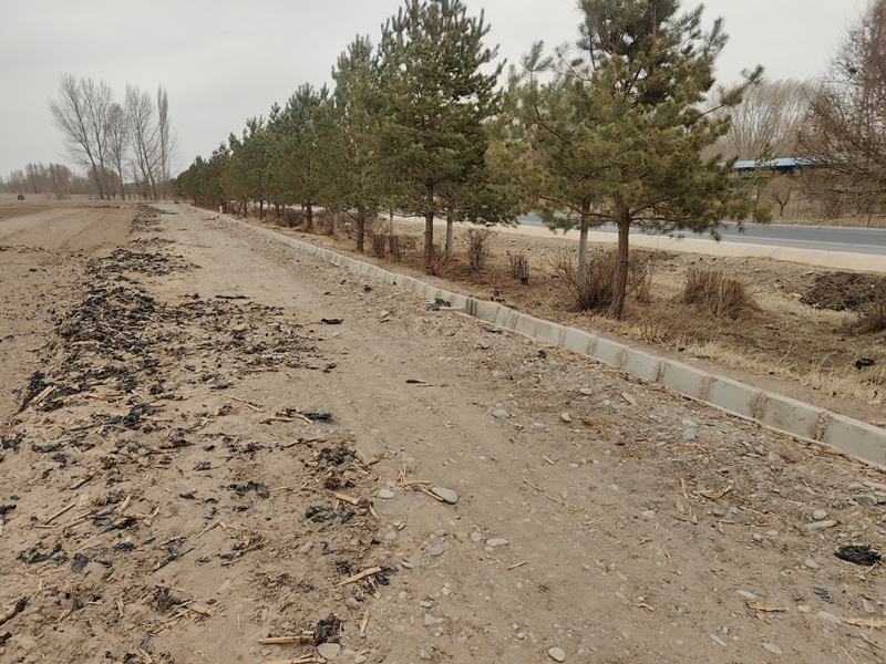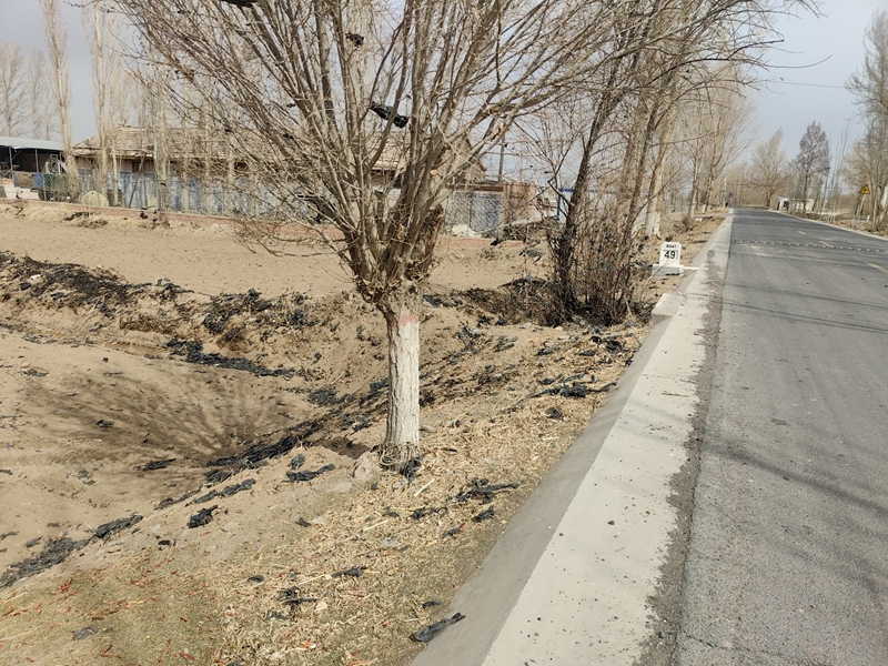 鸭暖镇五泉村(沙柳路段)两侧绿化带和田间道有大量残膜