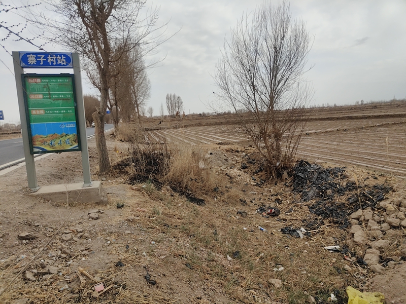 蓼泉镇寨子村入口两侧有大量残膜