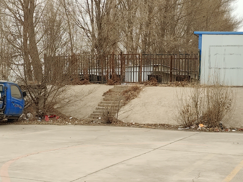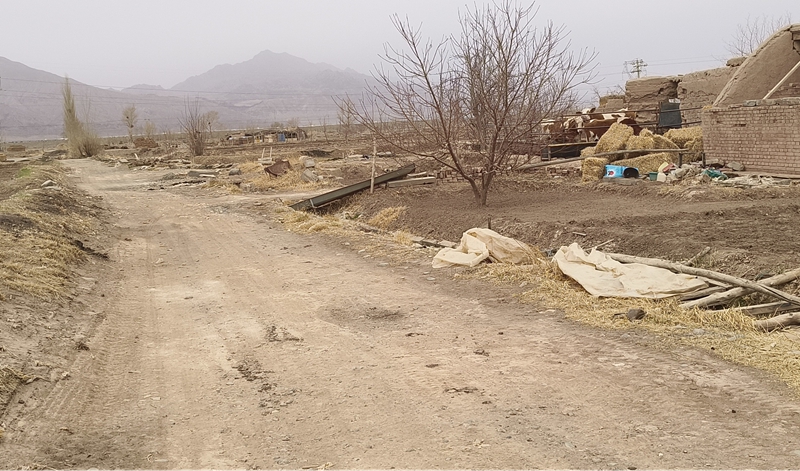 沙河镇新民村3社居民点北侧(第1户)农户门前堆放杂物,门前U型渠内垃圾多