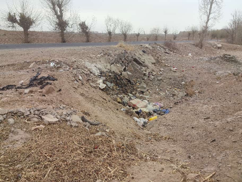 蓼泉镇墩子村主干道绿化带内残膜较多