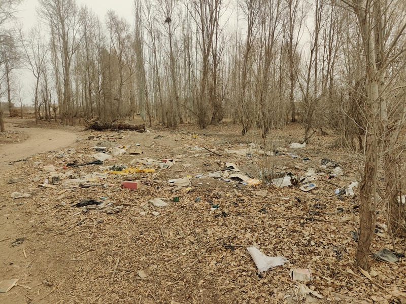 鸭暖镇暖泉村委会对面林地区域有大量残膜等垃圾
