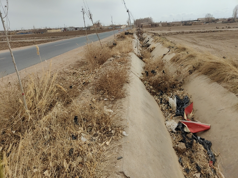 平川镇贾家墩村7社毛渠内废旧地膜较多