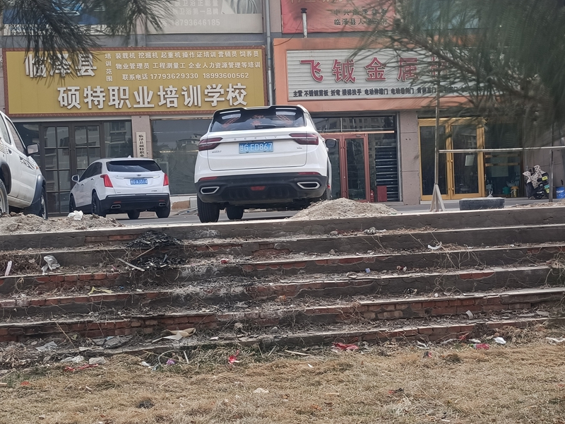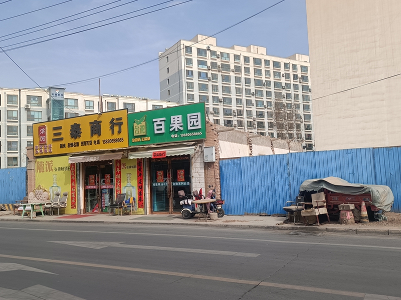 天鹅湖小区百果园商铺门两侧废旧家俱乱放、车辆乱停