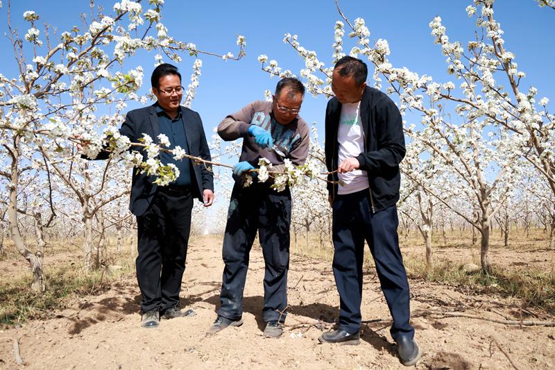 四月春光好,梨园农事忙。连日来,在百信乐梨园早酥梨种植基地,技术人员正抢抓梨花盛开的黄金窗口期,有序开展梨树树形修剪和疏花工作,为今年果品优质丰产打下坚实基础。