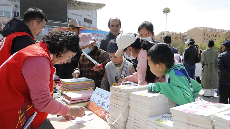 市民白文勤带着女儿参与换书活动,她感慨地说:“我们临泽县图书馆的所有阅读推广活动,我女儿基本上全部都会参加。特别是她上一年级以后,每天放学都能自觉地去阅读课外读物15到20分钟,所以她特别喜欢阅读。我也经常给她引导——书中自有黄金屋,书中自有颜如玉,腹有诗书气自华。多读书、读好书,一定能成为一个好学生、一个好的读书人。”