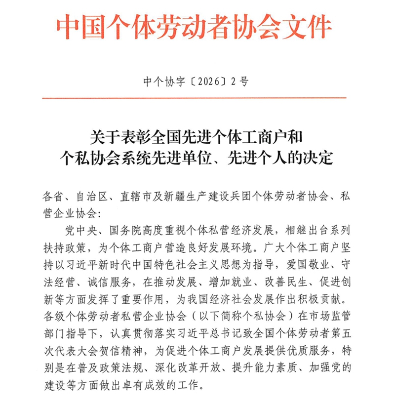 近日,中国个体劳动者协会发布《关于表彰全国先进个体工商户和个私协会系统先进单位、先进个人的决定》,对全国范围内表现突出的个私协会系统先进单位和个体工商户、先进个人予以表彰,临泽县福荣大酒店荣获“全国先进个体工商户”称号。这一荣誉不仅是其自身经营发展的成果,也是临泽县持续优化营商环境、全力扶持个体工商户健康成长的一个生动缩影。