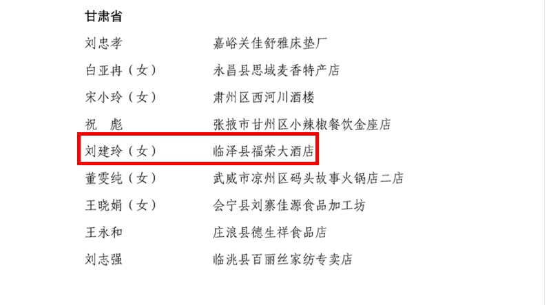 全国先进!临泽福荣大酒店喜提“国字头”表彰