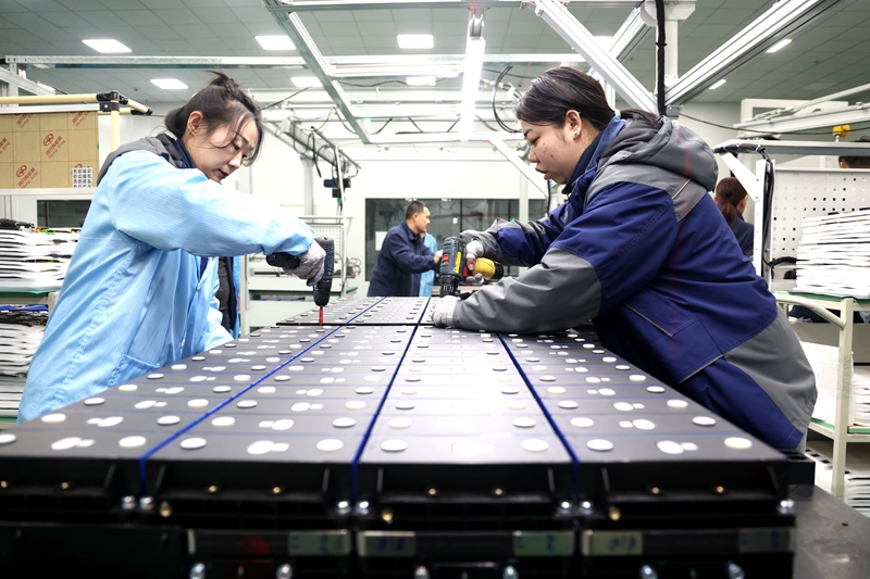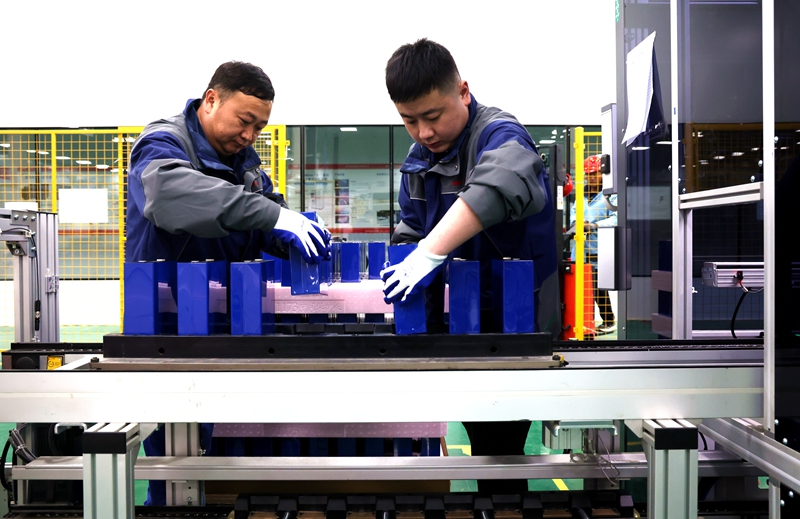 一年春作首,万事竞争先。走进临泽县扎尔墩工业集中区的易事特(张掖)储能技术有限公司PACK车间内,储能电池模组线上,各项设备开足马力运转,车间工人与生产机器人配合进行电芯大包装上线,电芯、端板上料堆叠,模组焊前绝缘测试等生产流程,加紧生产发往张掖民乐储能电站800MW及武威九墩滩800MW储能装备订单,现场一派繁忙的生产景象。(程莉)