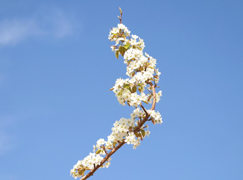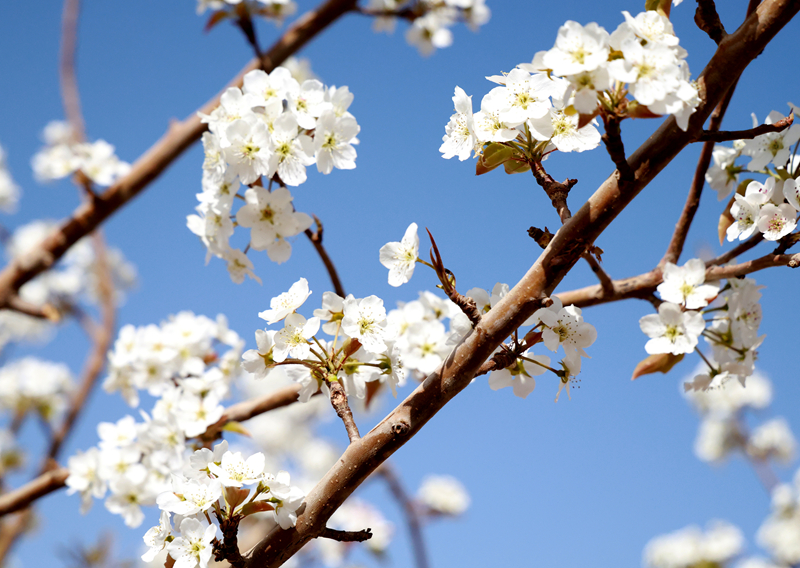 仲春时节,走进临泽县百姓乐梨园,连片梨树整齐成行、绵延成景,枝头梨花竞相绽放,一团团、一簇簇缀满枝丫,洁白似雪、素雅清丽,远远望去宛如皑皑春雪压满枝头,勾勒出一幅诗意盎然的田园画卷。