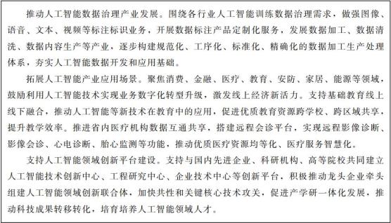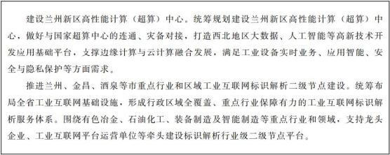 推动国家新一代人工智能创新发展试验区落地甘肃,规划建设一批人工智能超算中心,打造人工智能数据资源、计算能力、标准体系、测试评估等服务平台。依托大数据中心集群,打造数字智能产业链。加快引进国内外人工智能领军企业,推进人工智能在民生领域的融合应用,促进技术集成和商业模式创新。整合省内高校人才资源,联合国内外顶级人工智能机构,打造一流的人工智能超算产业基地。