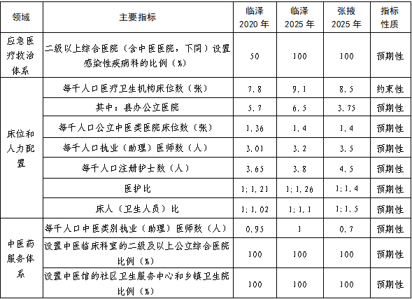 注:1.县级公立医院2025年指标数值为测算数值,其余数值来源于临泽县“十四五”卫生健康事业发展规划;