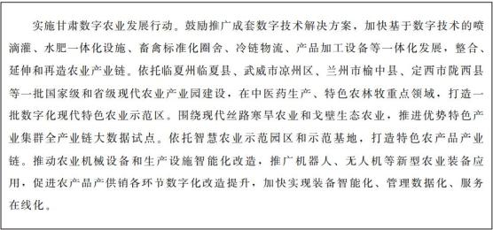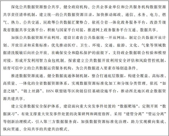 到2021年底,初步构建数字甘肃基本框架,推动数字经济发展的政策和配套体系基本成型,交通文旅、就业社保、生态环境等领域试点示范初见成效,全国一体化算力网络国家枢纽节点(甘肃)启动建设,确立甘肃在数据要素汇聚、大数据产业集聚、数据创新应用等领域优势。
