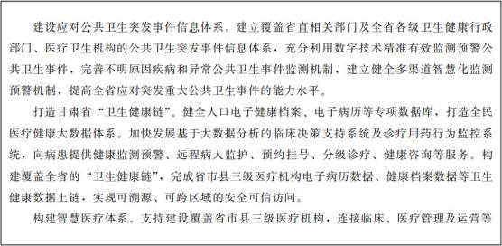 加快建设全民医疗健康管理服务大数据管理平台,打造以居民健康档案为重点的全民健康信息平台和医疗协作系统。推广发展云医院、在线医生业务,创新远程医疗服务模式,提升医疗资源利用效率和健康医疗服务质量。