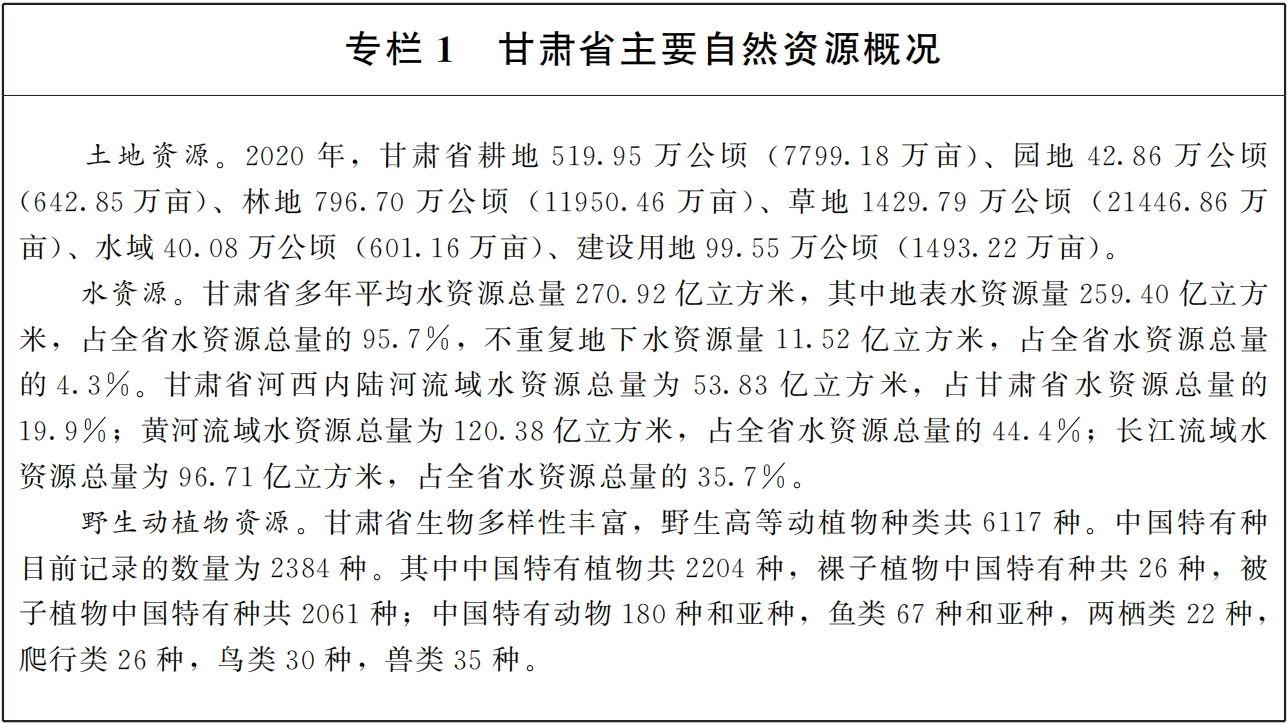 甘肃省历史悠久,地理区位独特,地貌景观多样,孕育了多元的地域文化和美丽国土,是中华文明的重要发祥地之一,是我国重要的能源基地、育制种基地和矿产资源大省,是共建“一带一路”的重要通道和西部大开发的开放枢纽,是黄河、长江上游重要的水源涵养区,是国家西部生态安全屏障,是陇原人民繁衍生息的家园,是建设社会主义现代化幸福美好新甘肃的空间载体。