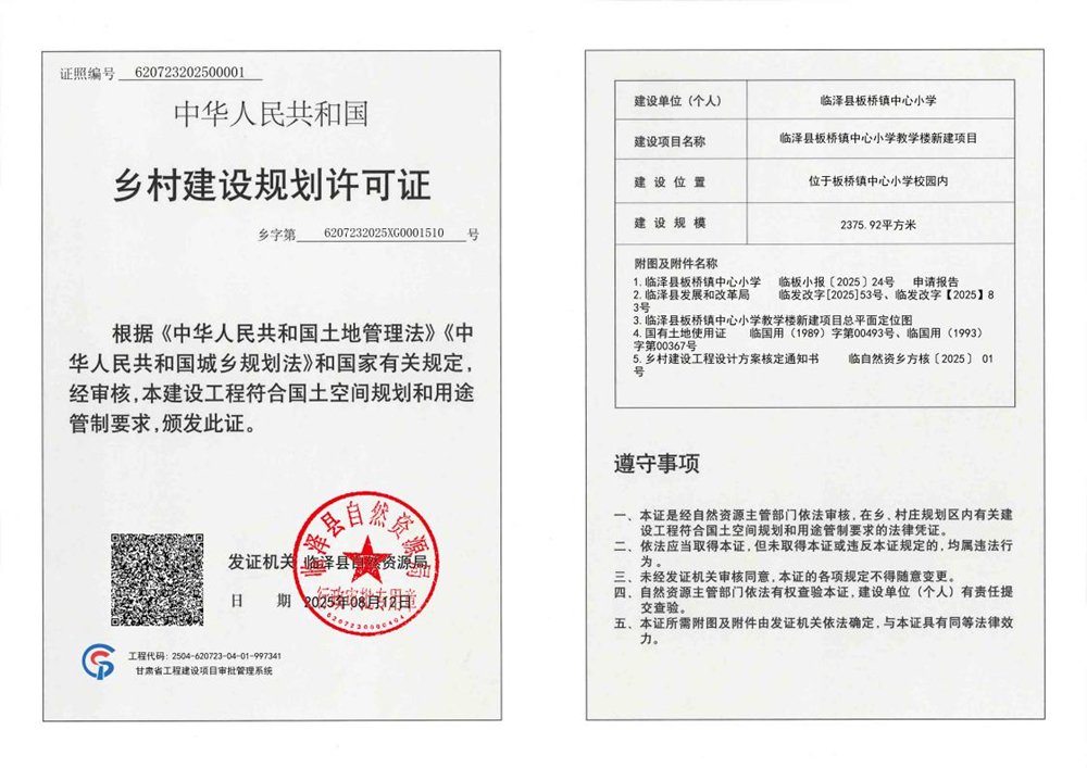 临泽县板桥镇中心小学教学楼新建项目《乡村建设规划许可证》公示
