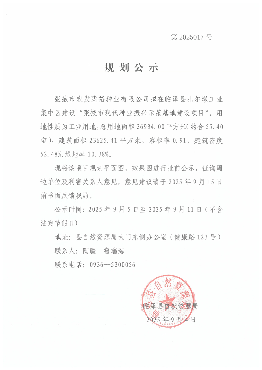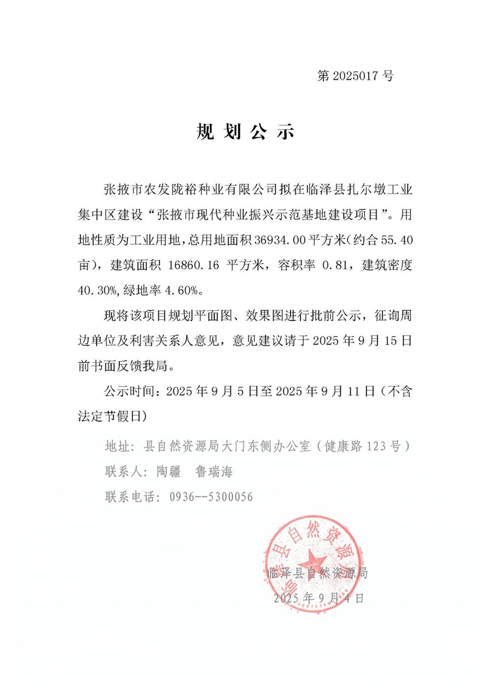 张掖市现代种业振兴示范基地建设项目批前规划公示