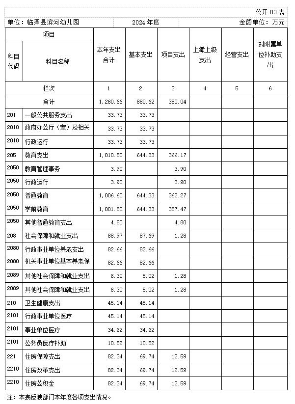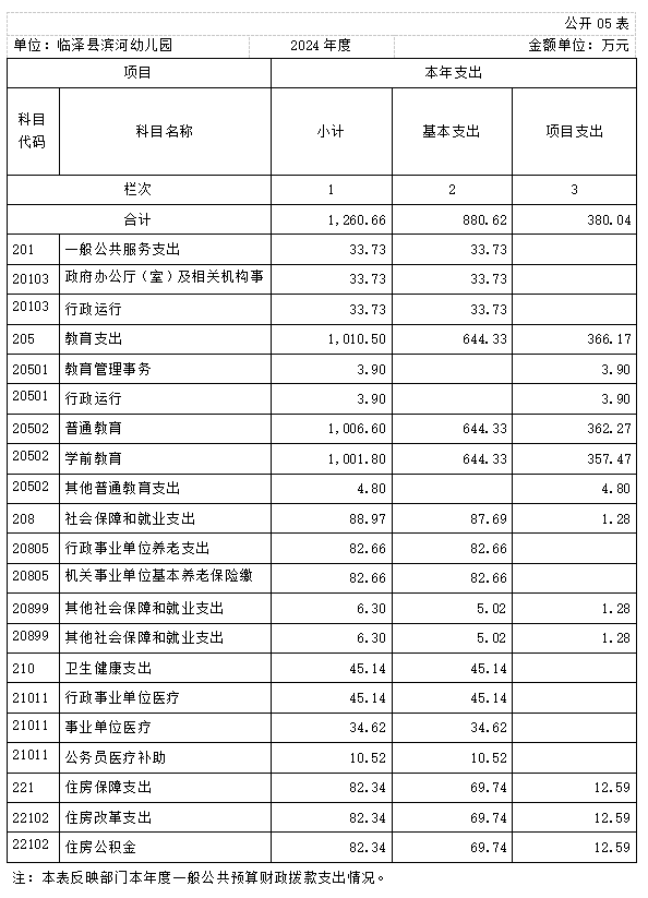 2024年度支出合计1260.66万元,其中:基本支出880.62万元,占69.85%;项目支出380.04万元,占30.15%。