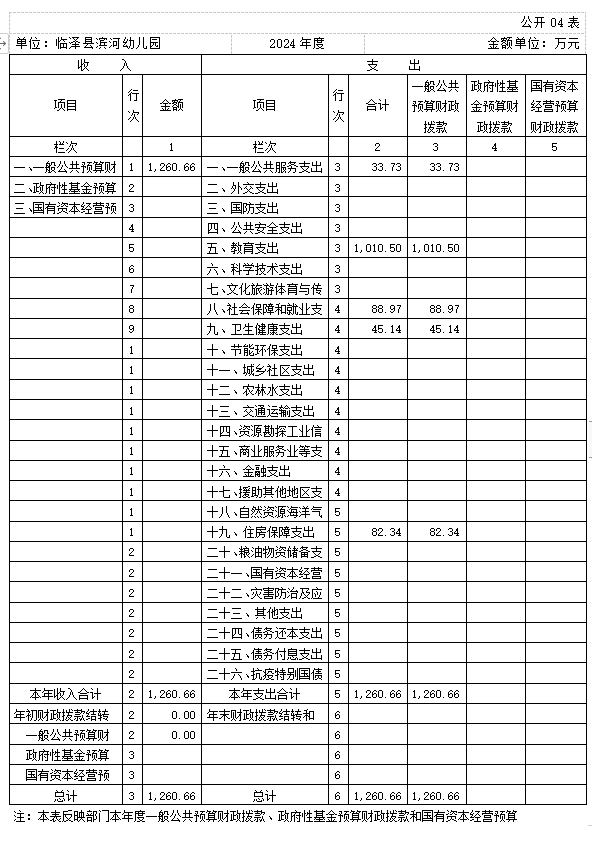 2024年度收、支总计均为1260.66万元。与上年度相比,收、支总计各增加122.82万元,增长10.79%,主要原因:一是人员工资增加;二是2020年奖金在本年决算。