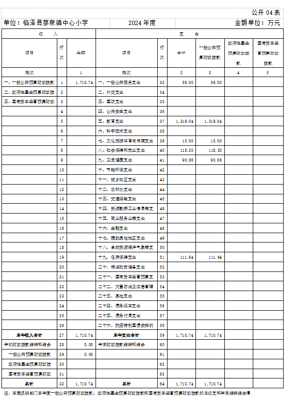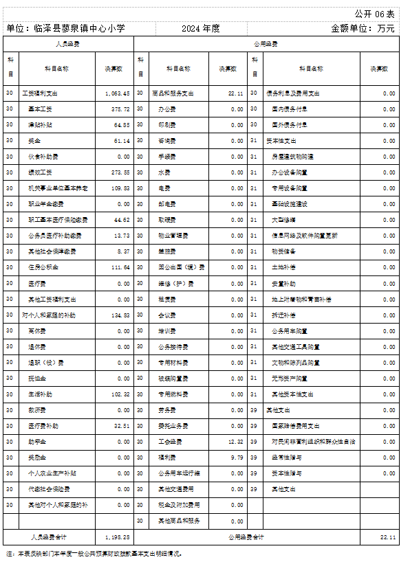 由于决算公开表格中金额数值应当保留两位小数,公开数据为四舍五入计算结果,个别数据合计项与分项之和存在小数点后差额,特此说明。