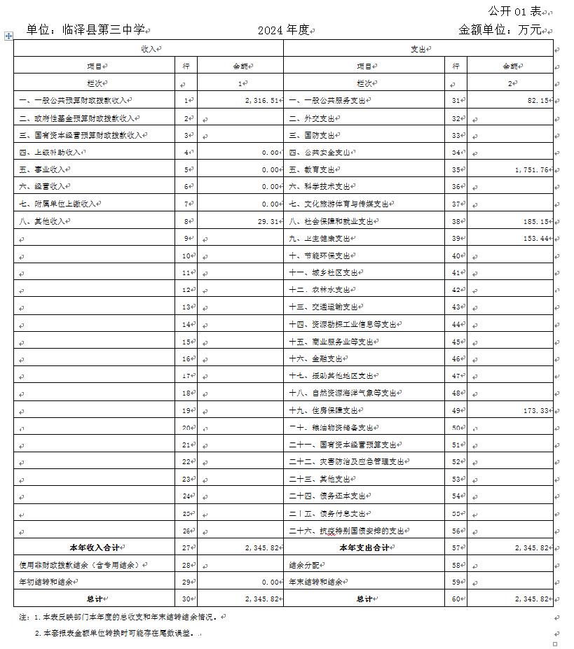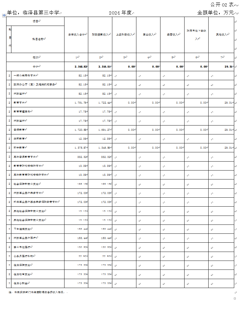 2.教育支出年初预算数为1534.29万元,支出决算为1722.44万元,完成年初预算的112.26%,决算数大于预算数的主要原因是学校公用经费等是上级转移支付资金,年初由临泽县教育局统一预算。