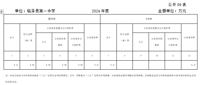 2024年度“三公”经费支出全年预算数为0.47万元,支出决算为0.47万元,决算数等于预算数的主要原因是严格按照部门预算执行,年末剩余未执行预算指标财政全部收回,较上年决算数增加0.06万元,增长15.71%,主要原因是与西北师范大学教研活动交流费用增加,支出相应增加。