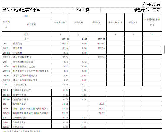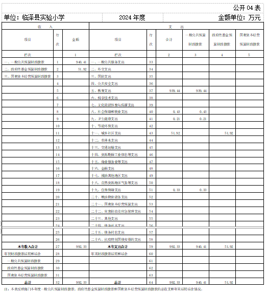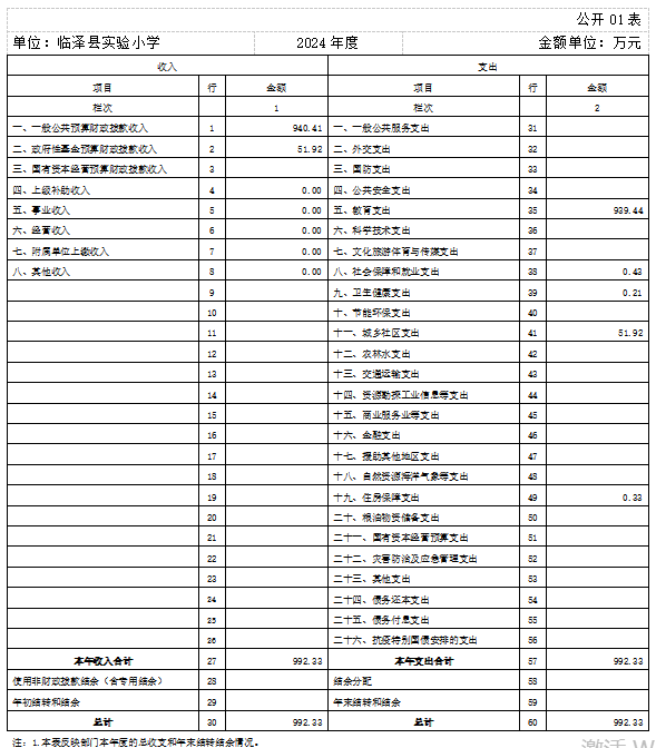 2024年度收、支总计均为992.33万元。与上年度相比,收、支总计各增加992.33万元,增长100%,主要原因是我校为新建学校,2023年无部门决算