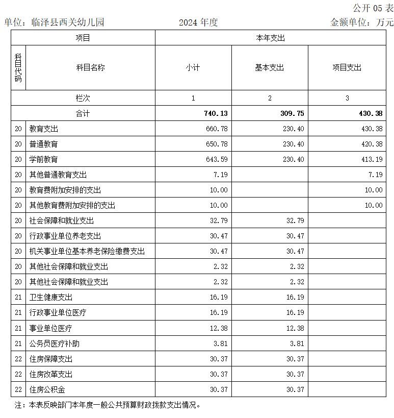2024年度一般公共预算财政拨款支出740.13万元,主要用于以下方面:教育支出660.78万元,占89.28%;社会保障和就业支出32.79万元,占4.43%;卫生健康支出16.19万元,占2.19%;住房保障支出30.37万元,占4.10%。