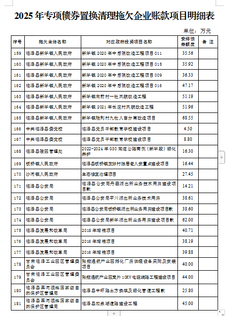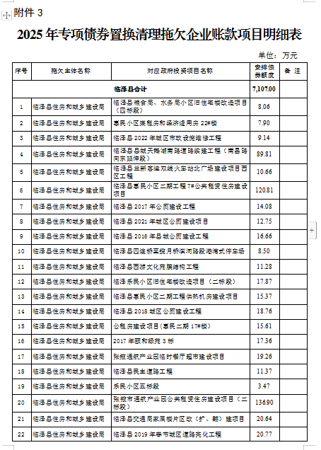 3.2025年专项债券置换清理拖欠企业账款项目明细表