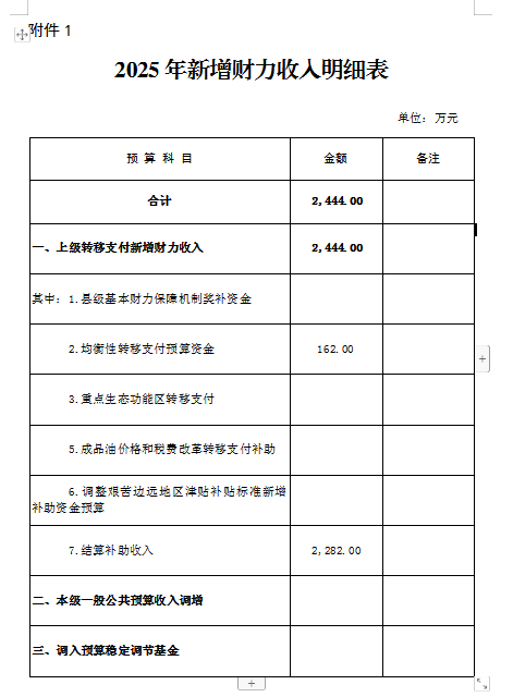 3.新增均衡性转移支付收入162万元2025年农业转移人口市民化奖励资金】