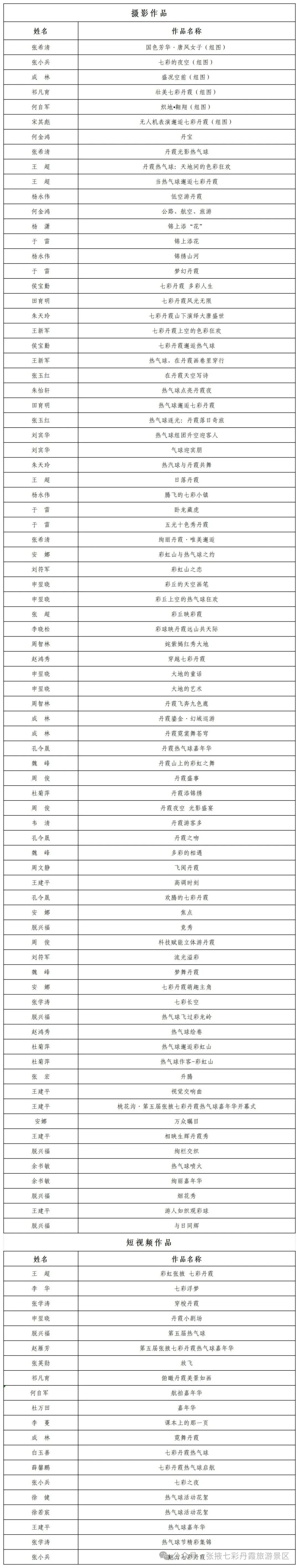 2025年9月14日,张掖七彩丹霞旅游景区邀请中国摄影家协会会员陈钢、张玉峰,甘肃省摄影家协会会员马玉良对第五届张掖七彩丹霞热气球嘉年华主题摄影、短视频大赛投稿作品进行评选。本次主题摄影、短视频大赛共收到摄影作品348幅(组),短视频32部。经过认真初评、终评和后期技术甄别,最终确定入选摄影作品80幅(组),短视频20部,现将入选作品及名单公示如下: