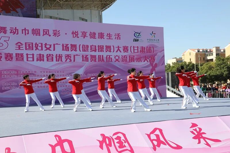 10月12日上午,2025年全国妇女广场舞(健身操舞)大赛(甘肃站)选拔赛暨甘肃省优秀广场舞队伍交流展示大赛,在临泽县文化体育广场举行。此次赛事汇聚了来自全省的14支优秀广场舞队伍,近260名队员同台竞技。比赛现场,欢快的音乐一响起,各参赛队伍便依次登场,她们凭借富有创意的舞蹈编排与风格各异的表现形式,为广场舞这项群众基础深厚的健身项目注入了新活力、新魅力,生动的表演也吸引了众多市民驻足围观,现场热闹非凡。