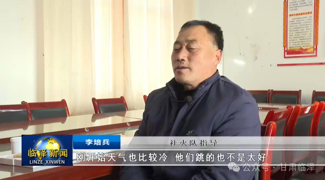 社火队指导李培兵:“刚开始天气也比较冷,他们跳的也不是太好,后来细致的一个一个给教动作,给手把手的教,都逐渐熟练了,跳的越来越好了。”
