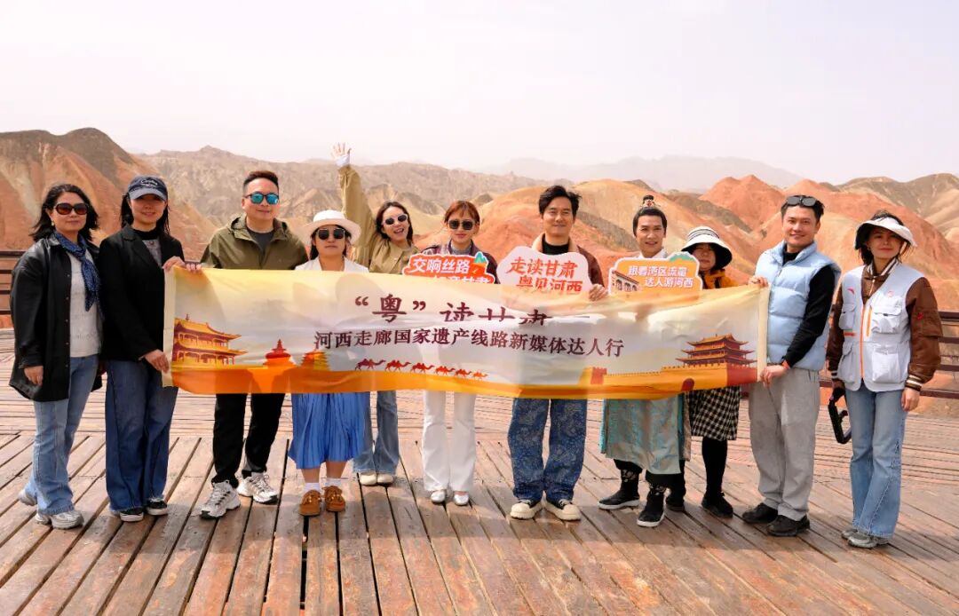 4月21日,甘肃省文化和旅游厅主办的“粤读甘肃”河西走廊国家遗产线路新媒体达人宣传推广活动,走进张掖七彩丹霞景区。来自粤港澳大湾区的多位头部流量达人汇聚于这片丝路秘境,以镜头为笔、文化为墨,开启了一场跨越山海的文旅传播之旅,为河西走廊文旅IP注入崭新活力。