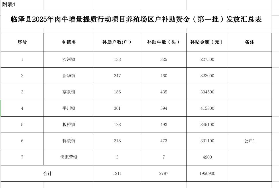 附表:临泽县2025年肉牛增量提质行动项目养殖场区户补助资金(第一批)发放汇总表