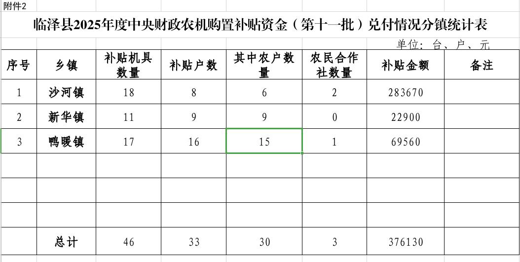 2.临泽县2025年度中央财政农机购置补贴资金(第十一批)兑付情况分镇统计表