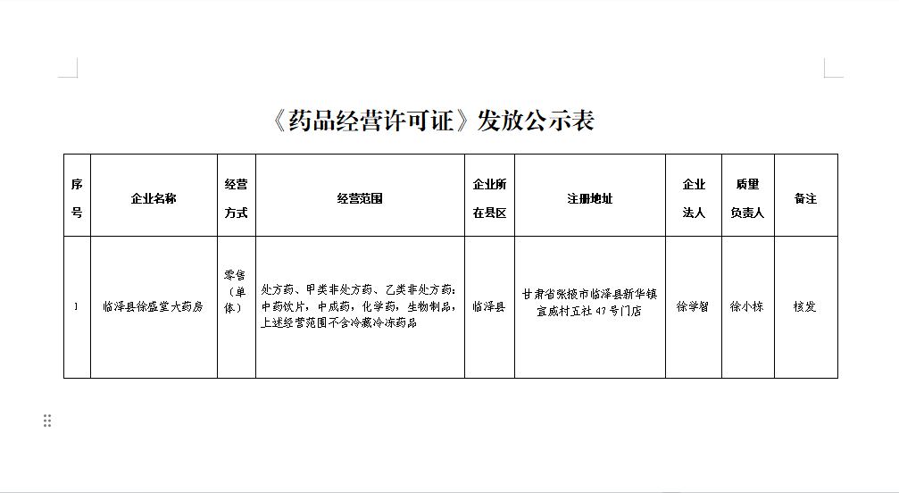 附件:《药品经营许可证》发放公示表