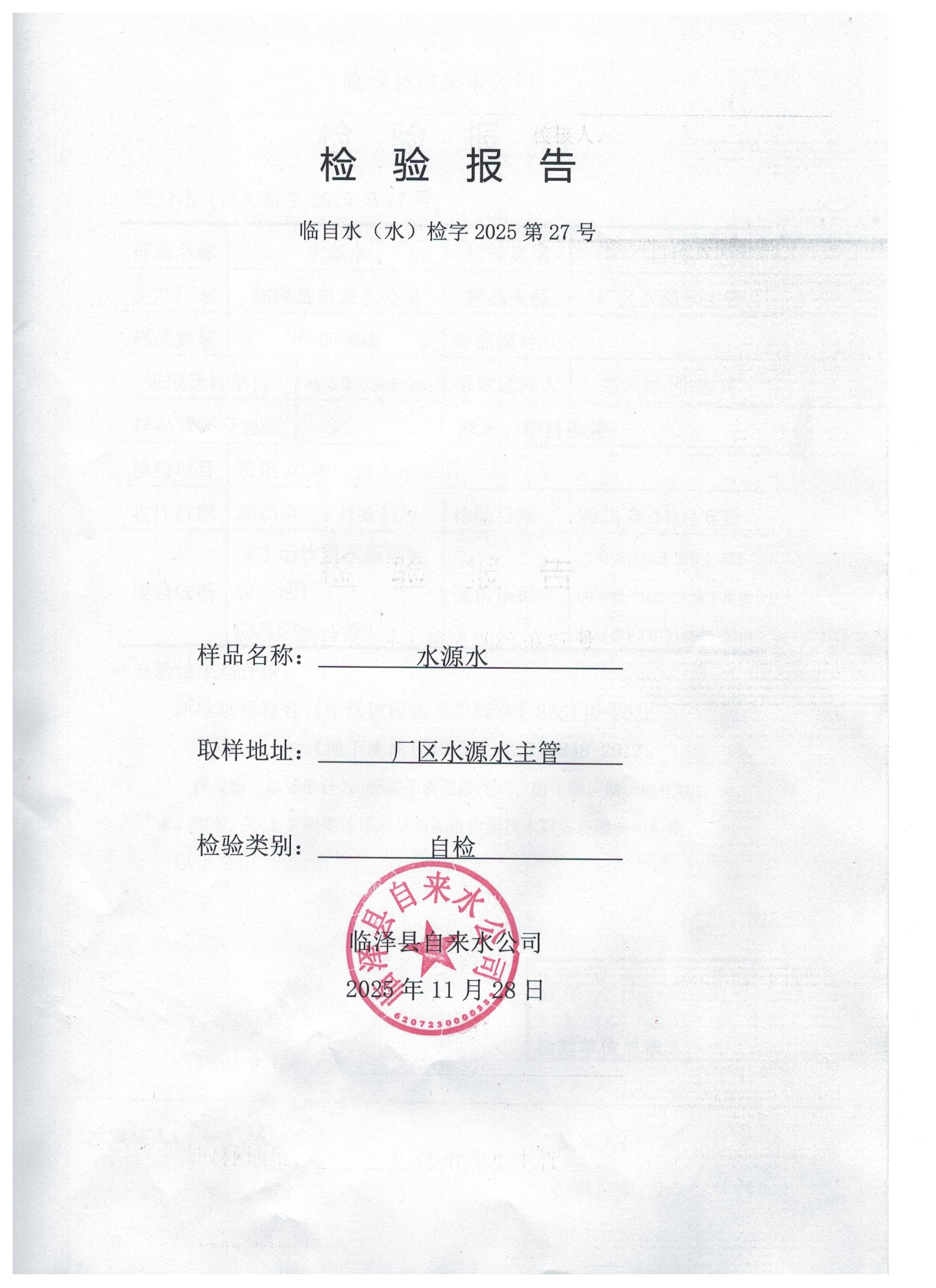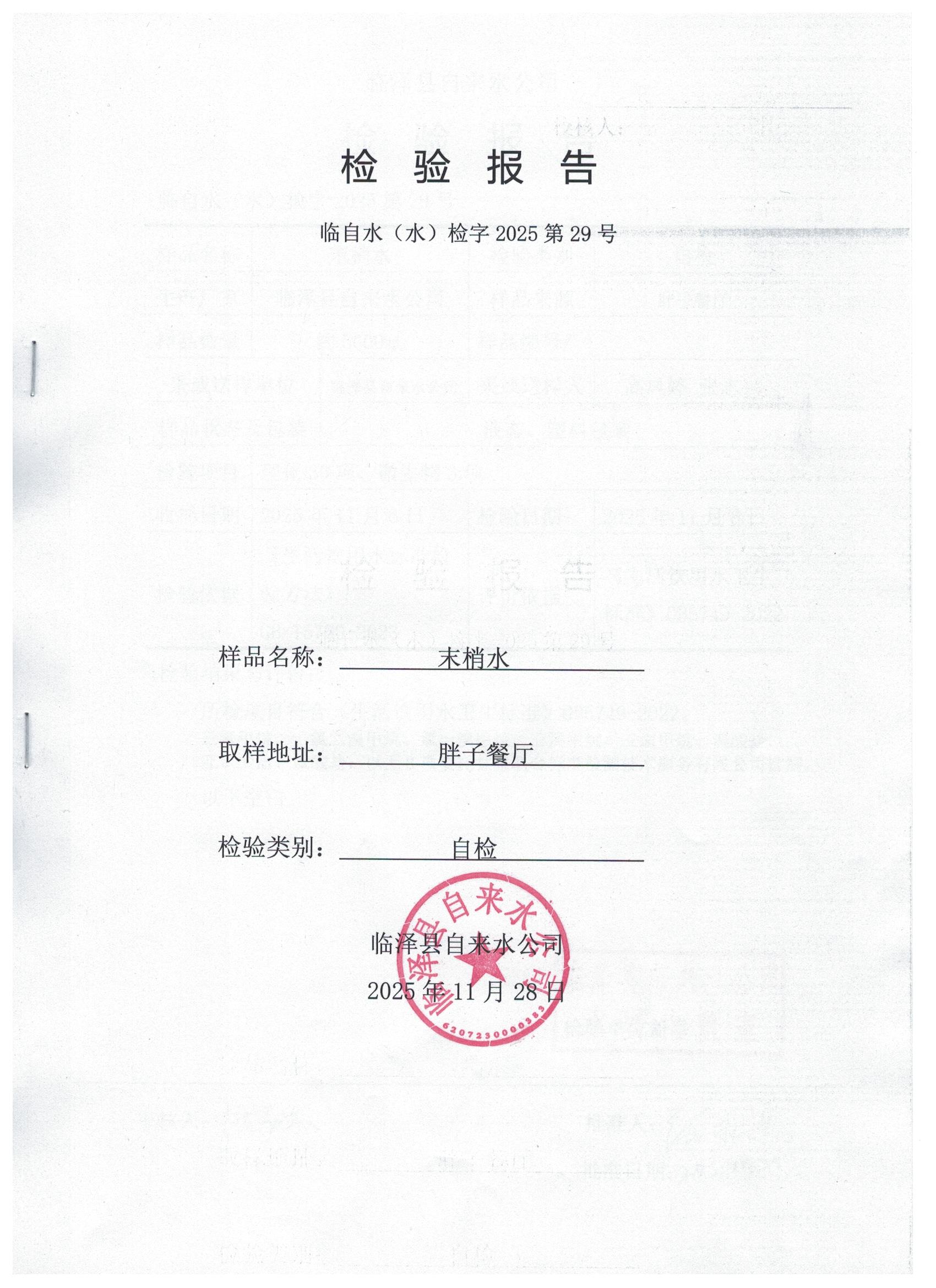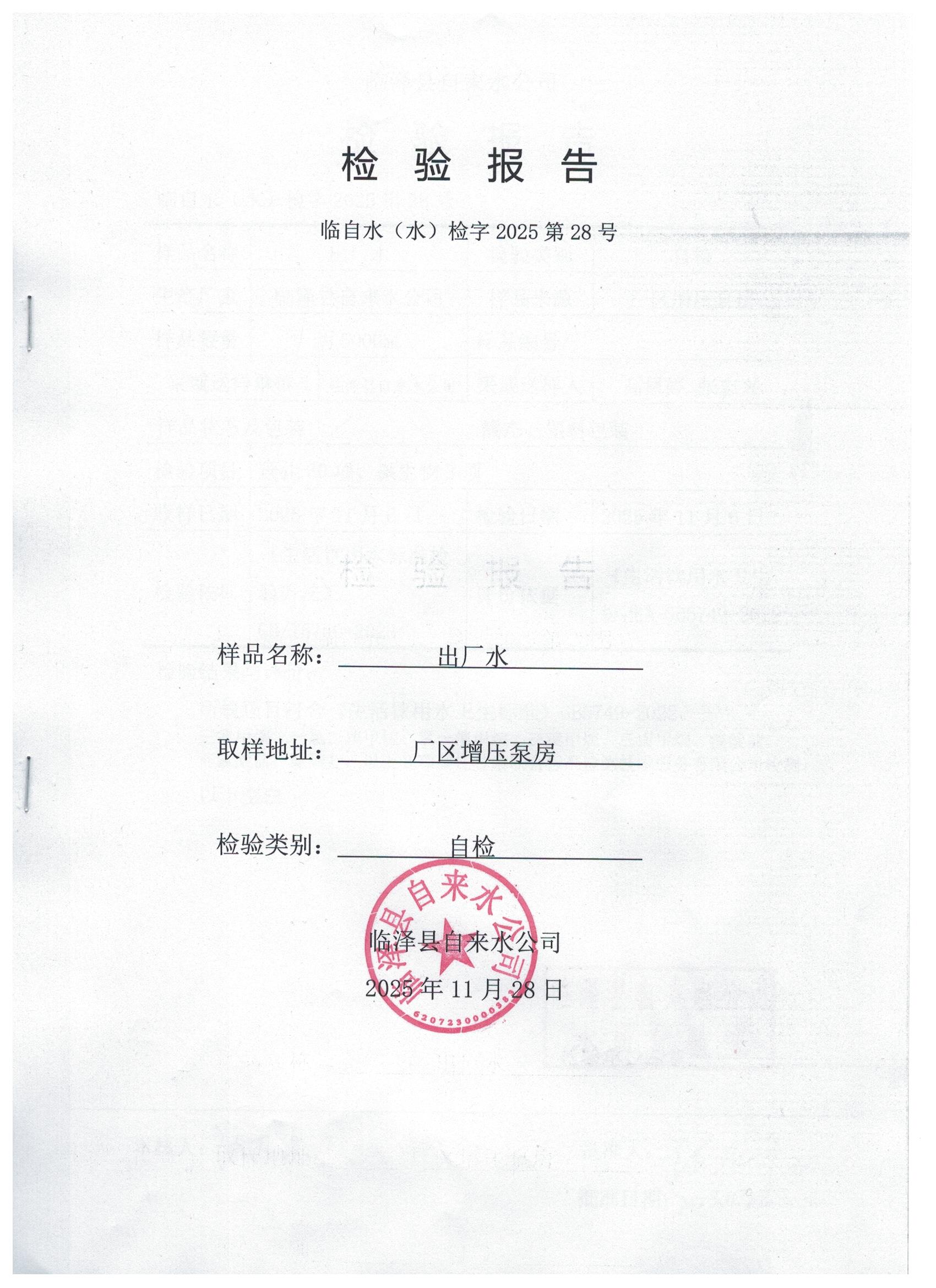 2025年11月临泽城市供水生活饮用水水质检测结果