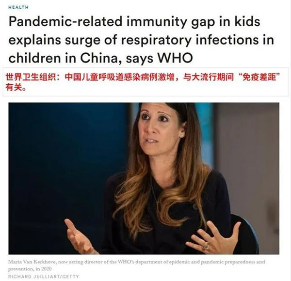 我国目前儿童呼吸道疾病激增的严峻形势,已经惊动了世界卫生组织(WHO)。WHO首席流行病学家玛丽亚·范·科霍夫(Maria Van Kerkhove)博士在11月24日表示,中国儿童这波感染浪潮主要源于新冠大流行后存在immunity gap(免疫落差)。