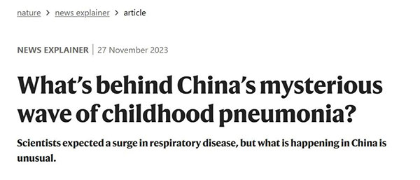 随后,国际顶尖学术期刊《Nature》 (《自然》期刊)也发布新闻内容探讨中国儿童肺炎爆发的成因,观点与 WHO 专家基本一致。