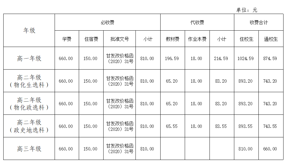 临泽县第一中学2026年春学期收费项目及标准