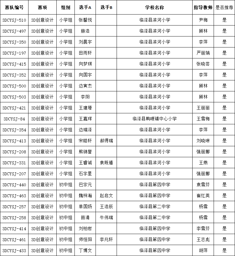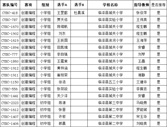根据张掖市教育局、张掖市科学技术协会《关于举办2026年张掖市科创大赛的通知》精神,为充分展示我县青少年科技创新教育成果,激发学生科学兴趣与创新精神,经学生报名、学校初选推荐,县教育局组织开展了数字艺术类、计算思维类两大类、5个赛项的县级现场大赛和专家集中评审。科创实践类:创造未来赛项,五三小学报名的3支队由学校选拔推荐2支队参加市级大赛;创意智造赛项,临泽二中报名的2支队由学校选拔推荐1支队参加市级大赛;其他赛项已报名的参赛队直接参加市级大赛。按照2026年张掖市科创大赛学生赛项县区分配名额,现将拟确定推荐参加2026年张掖市科创大赛的学生名单,并予以公示,接受社会监督。