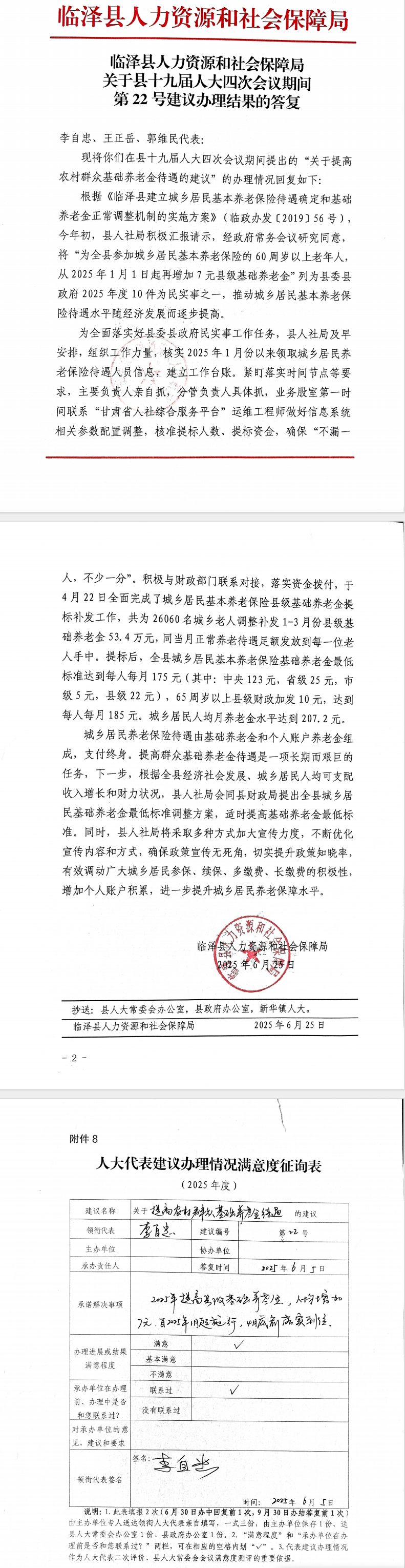 临泽县人力资源和社会保障局关于县十九届人大四次会议期间第22号建议办理结果的答复
