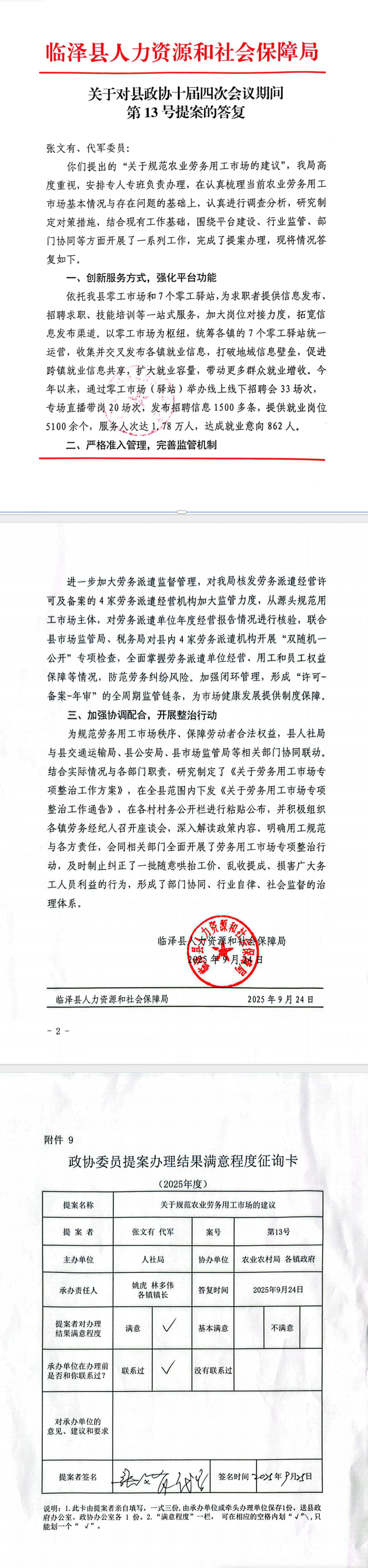 临泽县人力资源和社会保障局关于对县政协十届四次会议期间第13号提案的答复