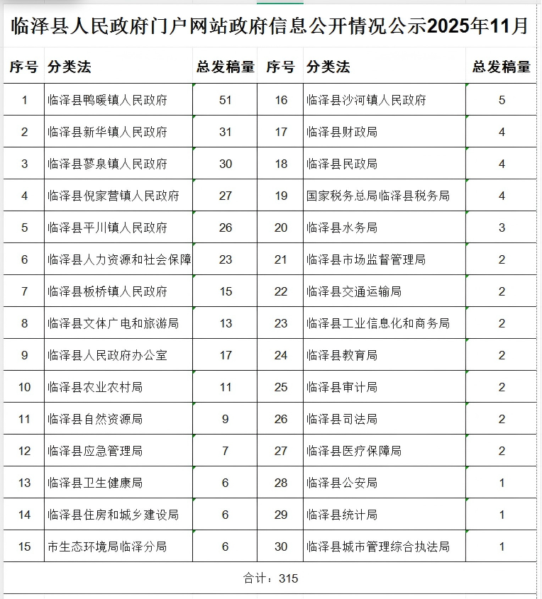 临泽县人民政府门户网站政府信息公开情况公示2025年11月
