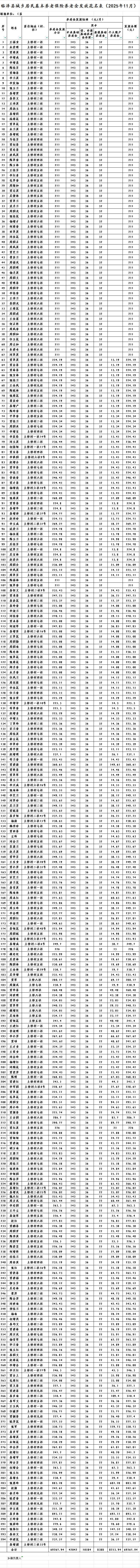 临泽县板桥镇土桥村城乡居民基本养老保险养老金发放花名表(2025年11月)