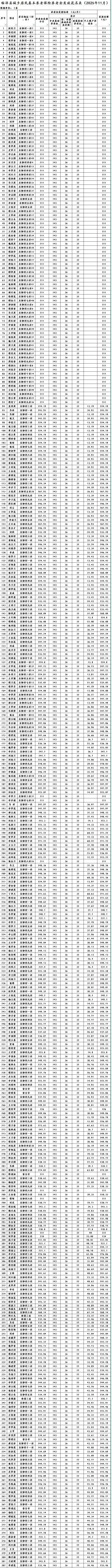 临泽县板桥镇东柳村城乡居民基本养老保险养老金发放花名表(2025年11月)