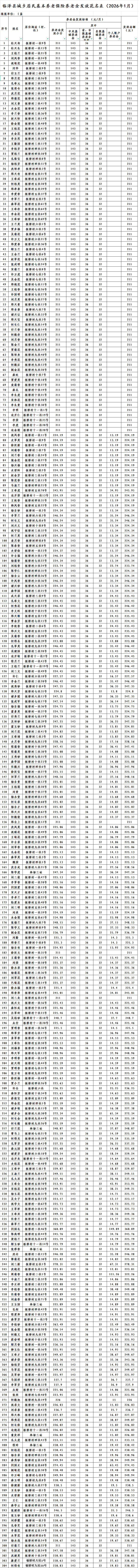 临泽县板桥镇板桥村城乡居民基本养老保险养老金发放花名表(2026年1月)