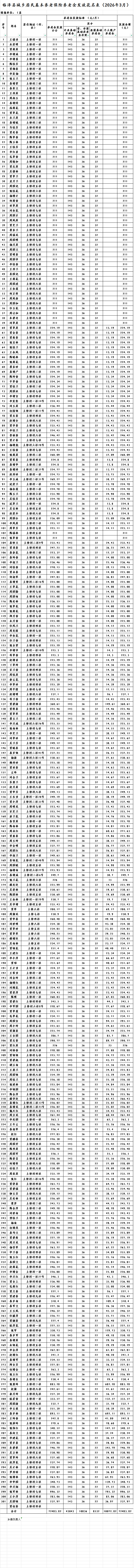 临泽县板桥镇土桥村城乡居民基本养老保险养老金发放花名表(2026年3月)