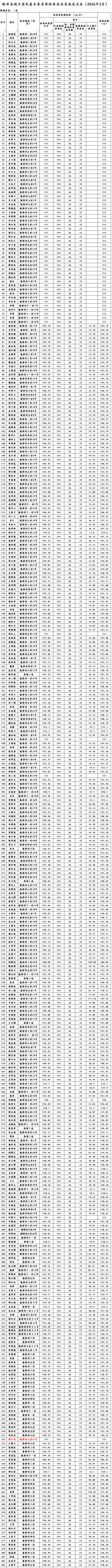 临泽县板桥镇板桥村城乡居民基本养老保险养老金发放花名表(2026年3月)