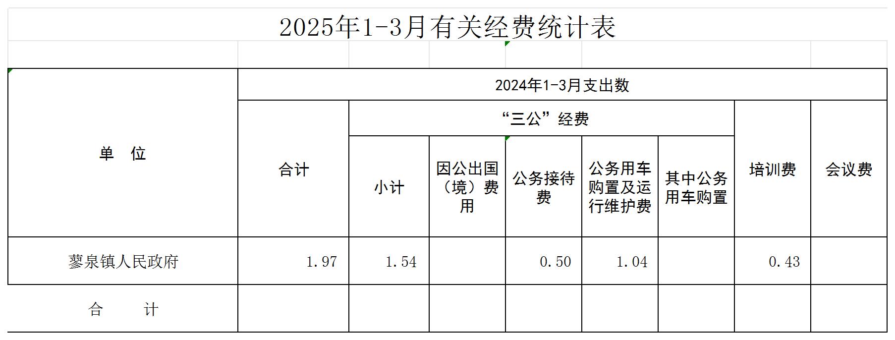 2025蓼泉镇部门“三公”经费财政拨款情况(1月---3月)